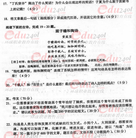 - 2025成人高考語文真題及答案解析匯總2025-10-22