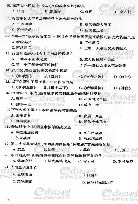 當前位置: 首頁 > 成人高考 > 成人高考歷年試題 > 2008年成人高考高起點歷史地理試題