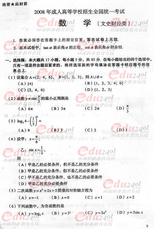 - 2025成考高起專數學真題(文)下載!含答案速查2025-10-20