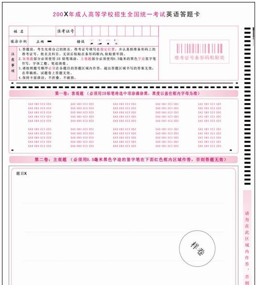 成考實施網(wǎng)上閱卷考生答題注意事項