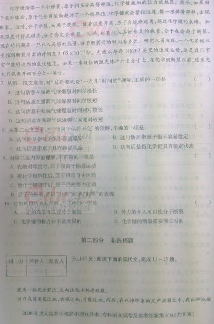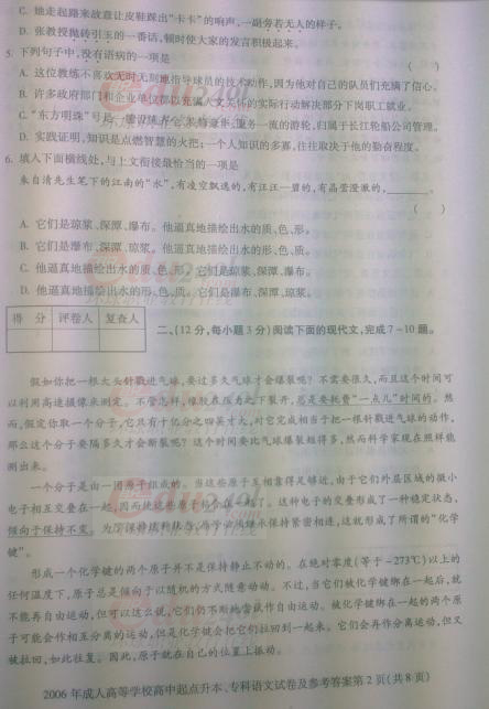 2006年成考專升本語文全國統考試卷