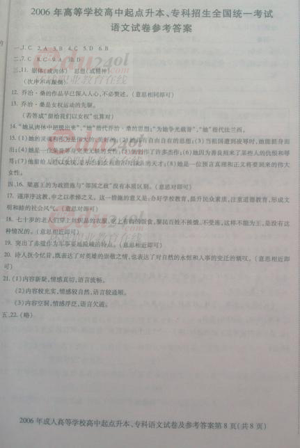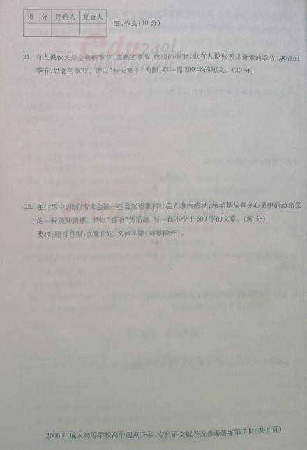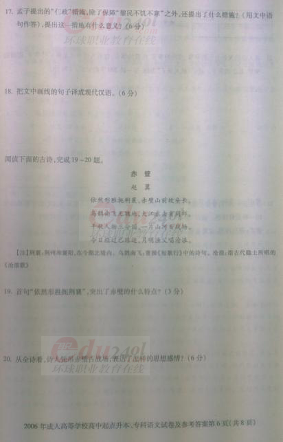 當前位置: 首頁 > 成人高考 > 成人高考歷年試題 > 2006年成考專升本語文全國統考試卷