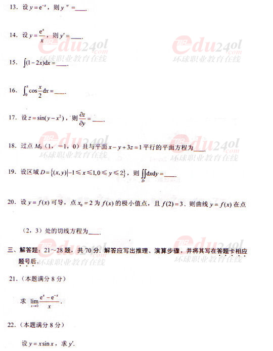 - 2025成人高考高等數(shù)學一真題+答案PDF免費下載2025-10-21