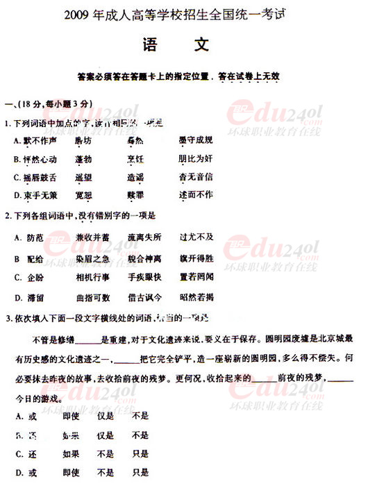 - 2025成人高考語文真題及答案解析匯總2025-10-22