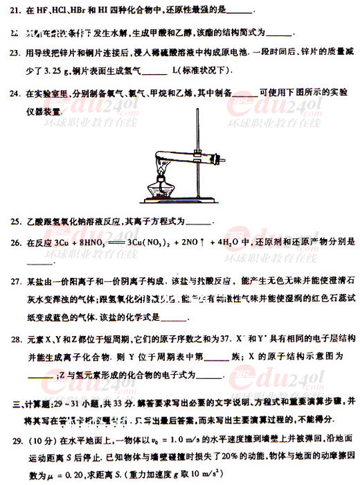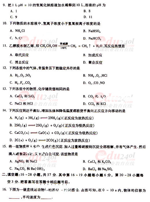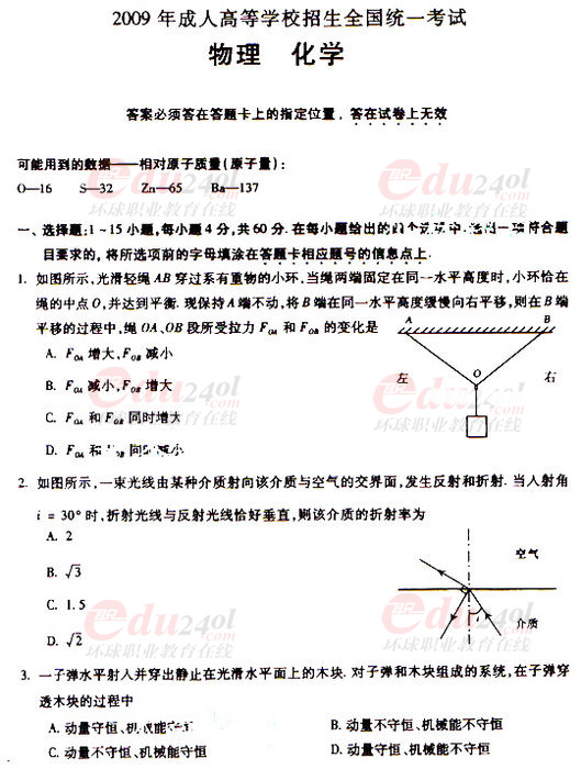 當前位置: 首頁 > 成人高考 > 成人高考歷年試題 > 2009年成人高考高起點物理化學綜合真題
