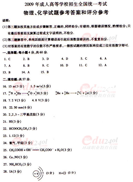 當前位置: 首頁 > 成人高考 > 成人高考歷年試題 > 2009年成人高考高起點物理化學綜合真題答案