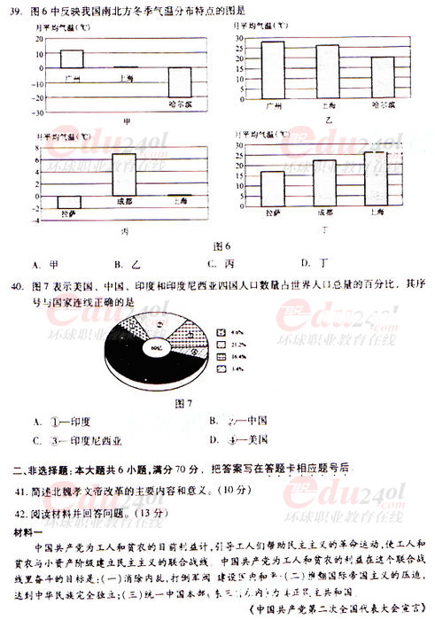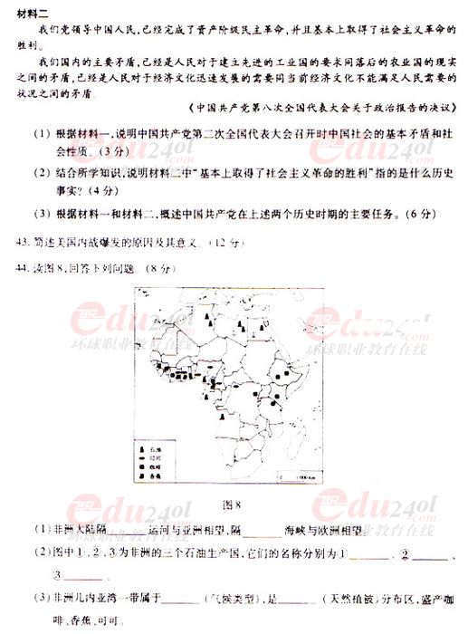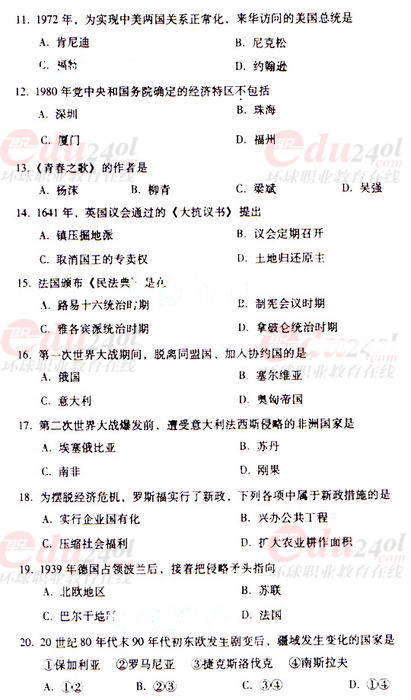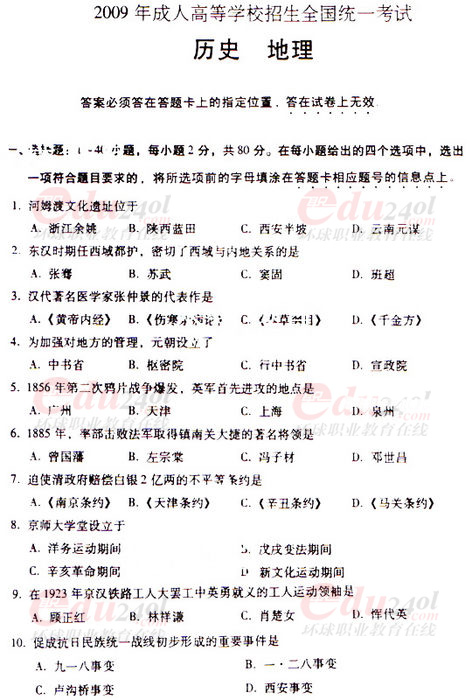 當前位置: 首頁 > 成人高考 > 成人高考歷年試題 > 2009年成人高考高起點歷史地理綜合真題
