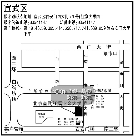 2009年成考北京宣武區現場報名確認地點