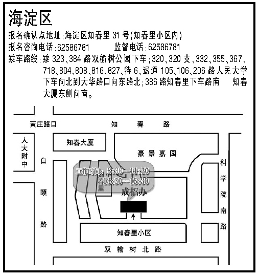 2009年成考北京海淀區(qū)現(xiàn)場報名確認(rèn)地點