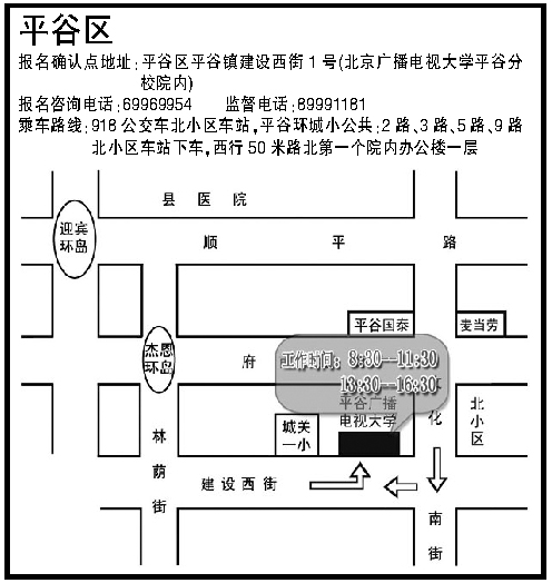 2009年成考北京平谷區現場報名確認地點