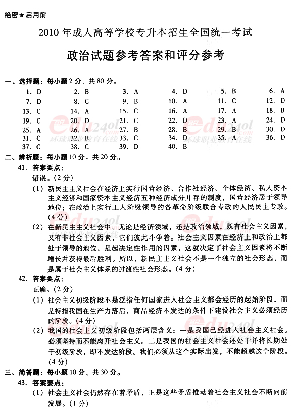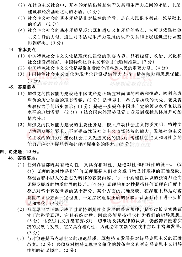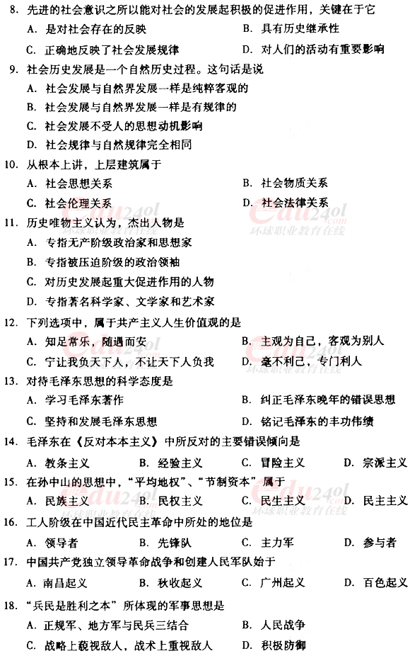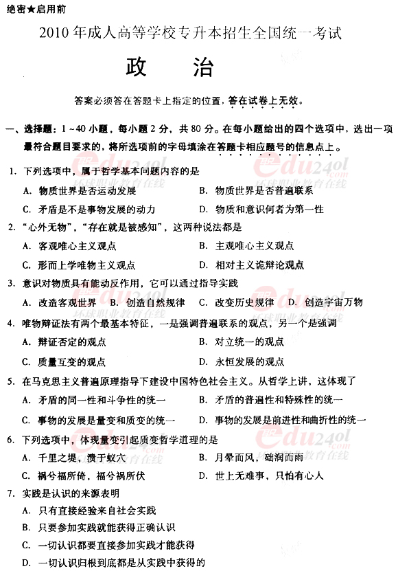 當前位置: 首頁 > 成人高考 > 成人高考歷年試題 > 2010年成考專升本政治真題及答案