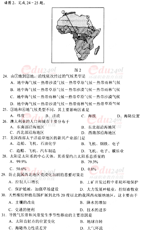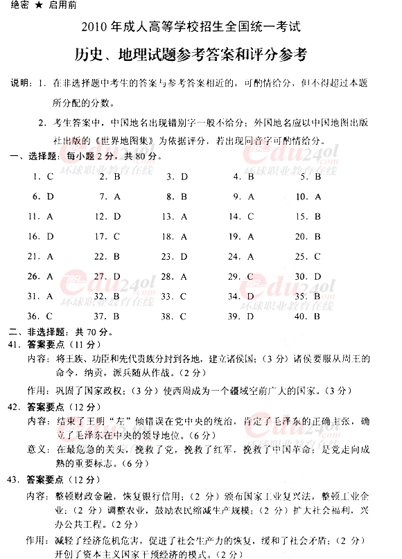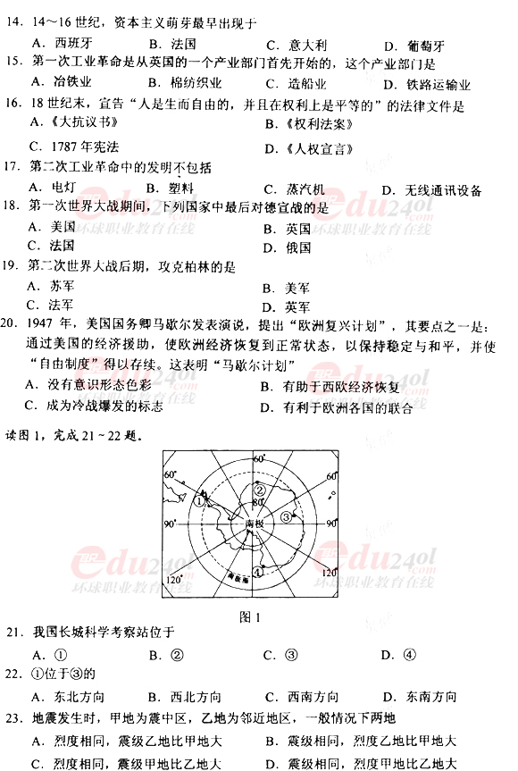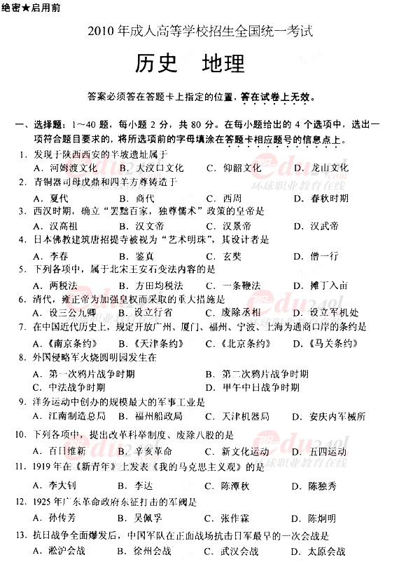當前位置: 首頁 > 成人高考 > 成人高考歷年試題 > 2010年全國成人高考高起點歷史地理真題及答案