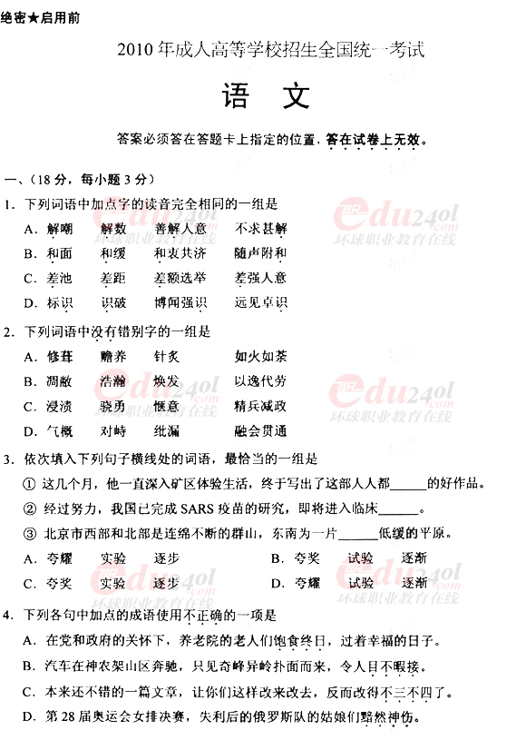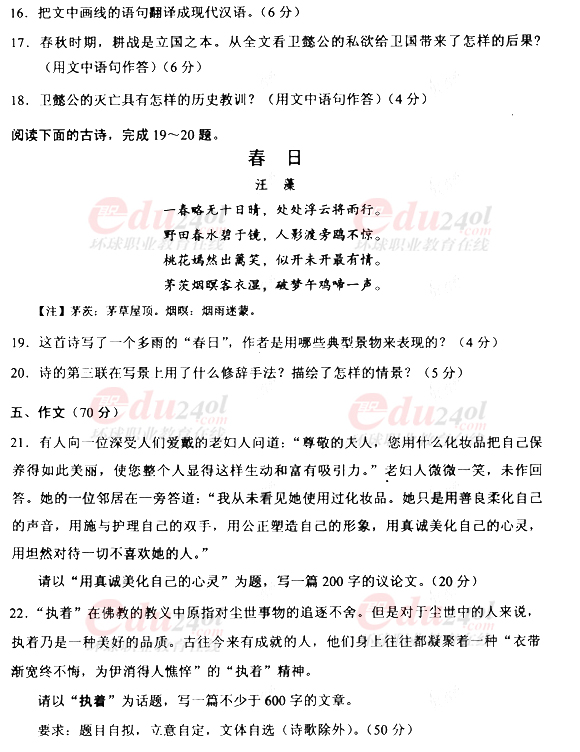 - 2025成人高考語文真題及答案解析匯總2025-10-22