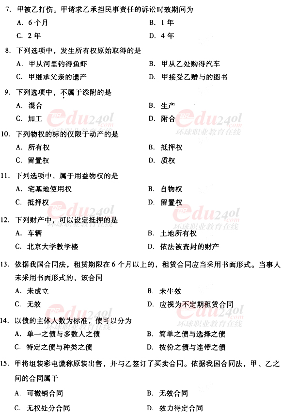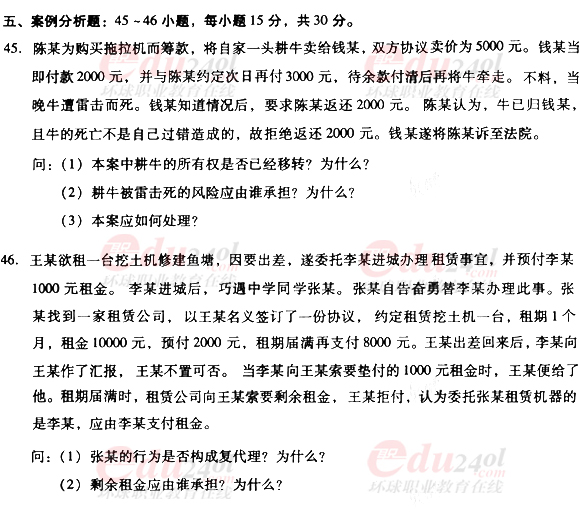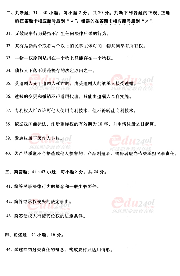 當前位置: 首頁 > 成人高考 > 成人高考歷年試題 > 2010年成考專升本民法真題及答案