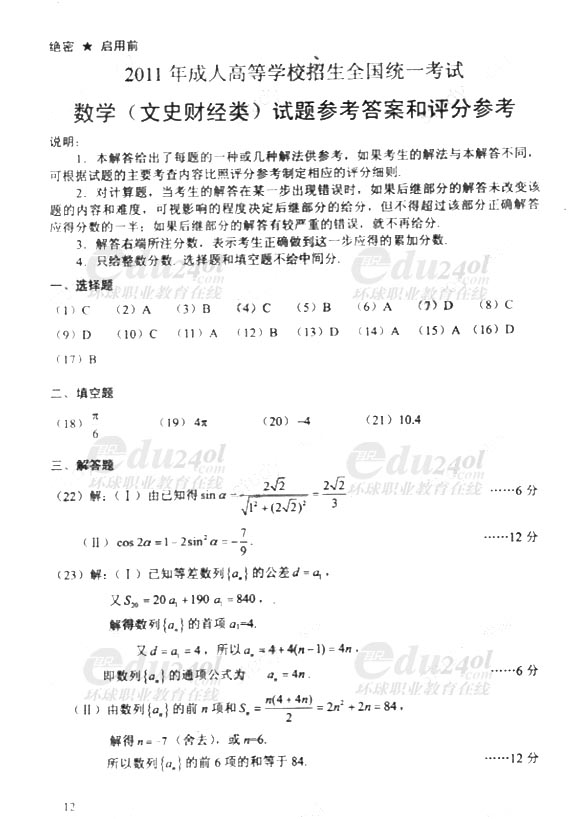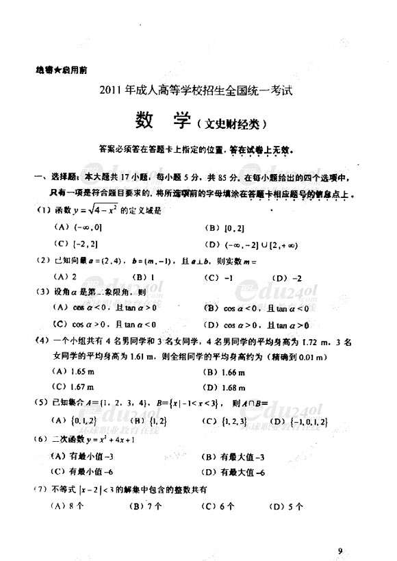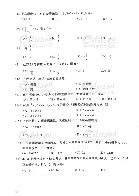 - 2025成考高起專數學真題(文)下載!含答案速查2025-10-20