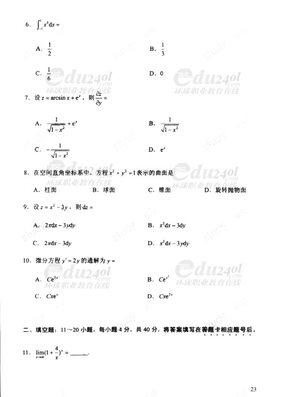 當前位置: 首頁 > 成人高考 > 成人高考歷年試題 > 2011年成人高考(專升本)高等數學(一)試卷及答案