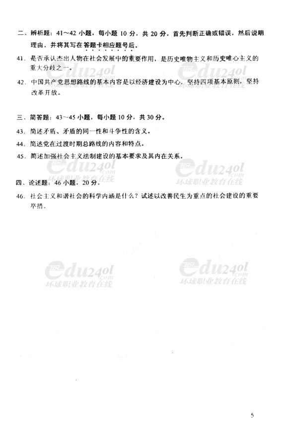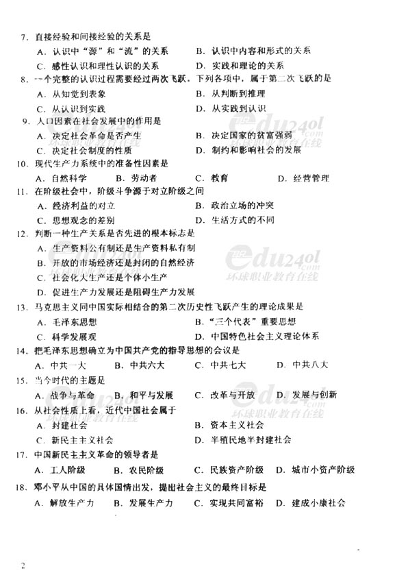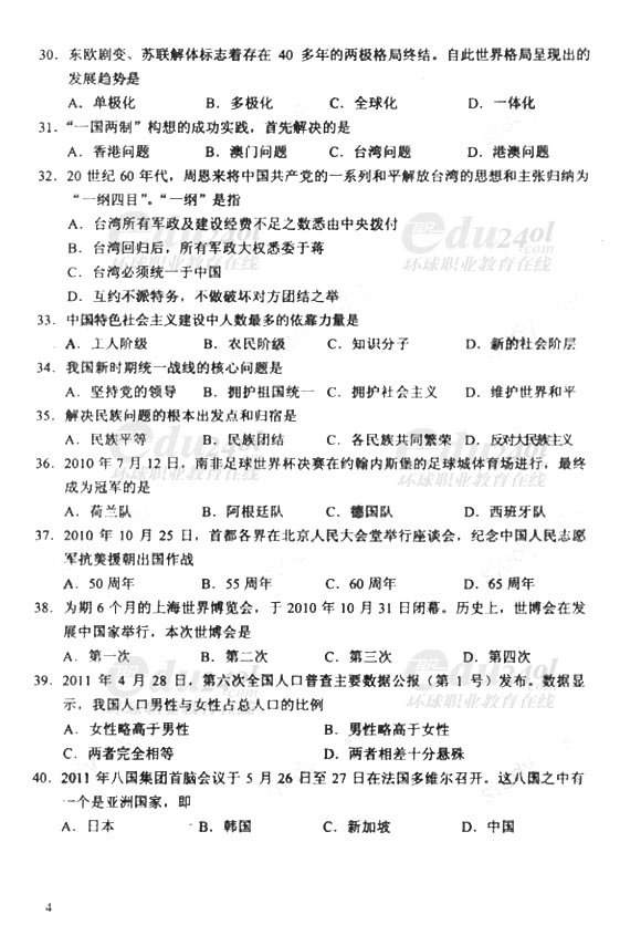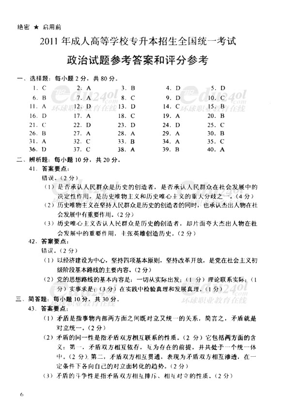 當前位置: 首頁 > 成人高考 > 成人高考歷年試題 > 2011年成人高考(專升本)政治試卷及答案