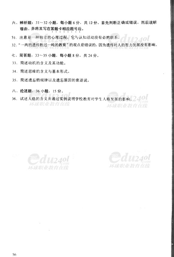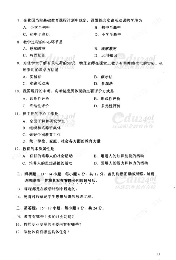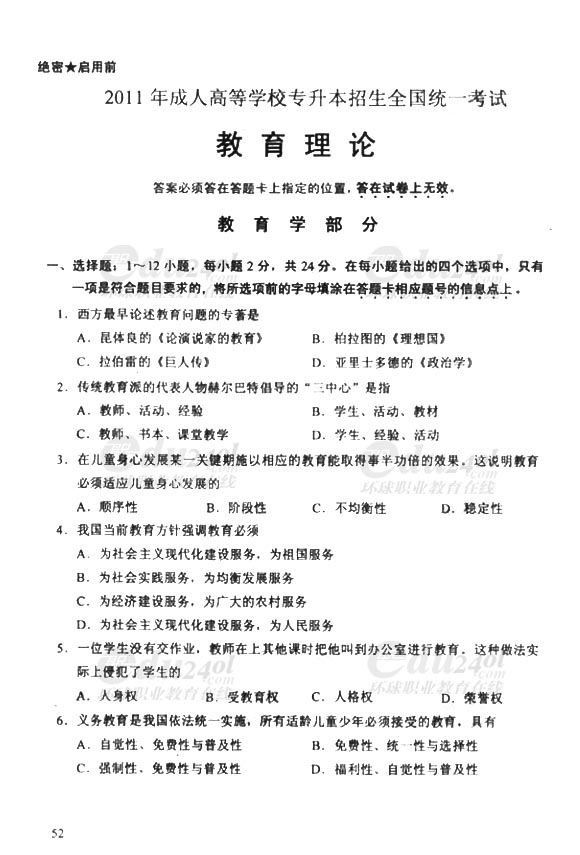 當前位置: 首頁 > 成人高考 > 成人高考歷年試題 > 2011年成人高考(專升本)教育理論試卷及答案