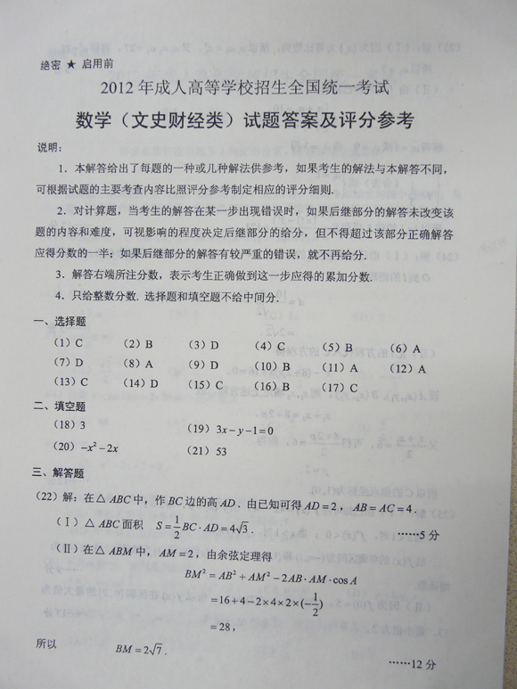 當前位置: 首頁 > 成人高考 > 成人高考歷年試題 > 2012年成考高起點數學(文)真題答案(完整無水印版)