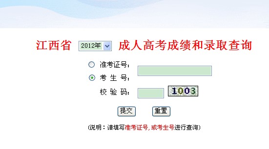2012年江西成人高考成績查詢入口開通