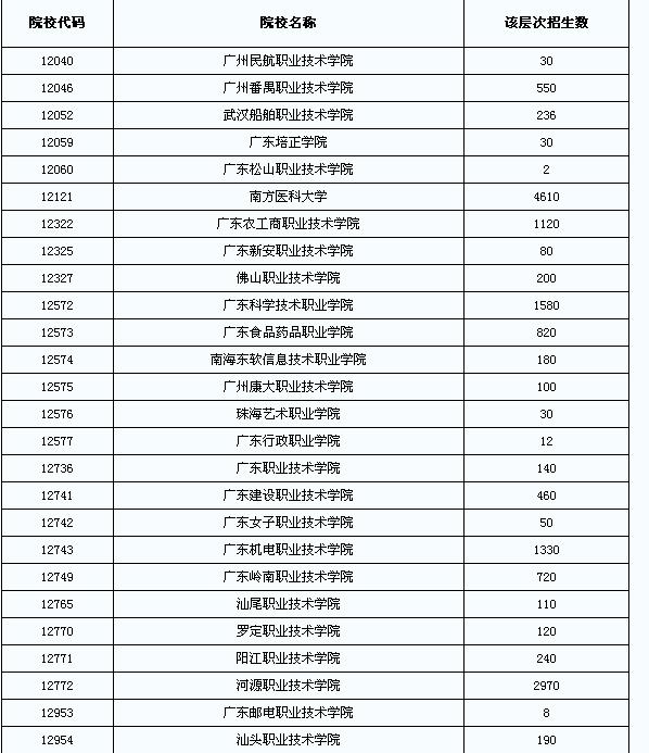 摘要 廣東2012年成人高考專科函授業余班招生計劃