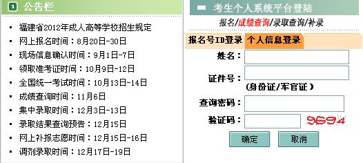 點擊進入>>福建2012年成人高考錄取查詢入口(暫未開通)