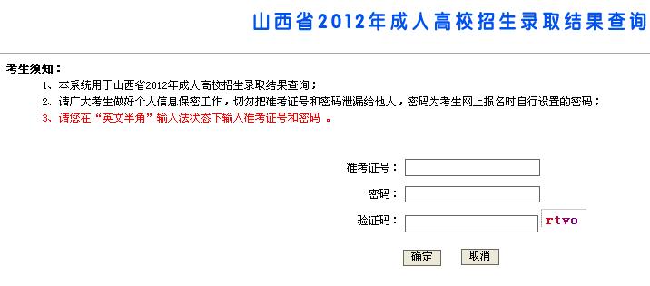 摘要 山西省2012年成人高考錄取查詢入口開通