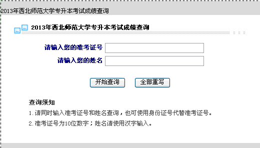 根據西北師范大學專升本官方網站信息,2013年西北師范大學專升本考試成績已經公布,點擊下列圖片直擊進入官方查詢入口: