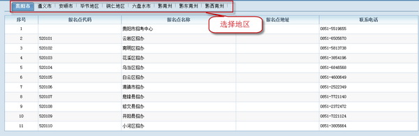 系統(tǒng)中提供了各市(州)考試報名點信息查詢,可以查詢到報名點的地址、聯(lián)系方式,具體如下所示:
