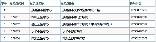 江西景德鎮市2013年成人高考現場確認點及聯系方式