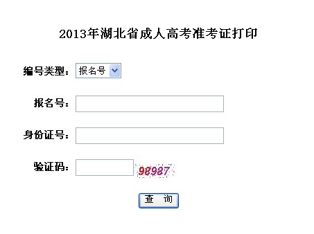 湖北省2013年成人高考準考證打印入口