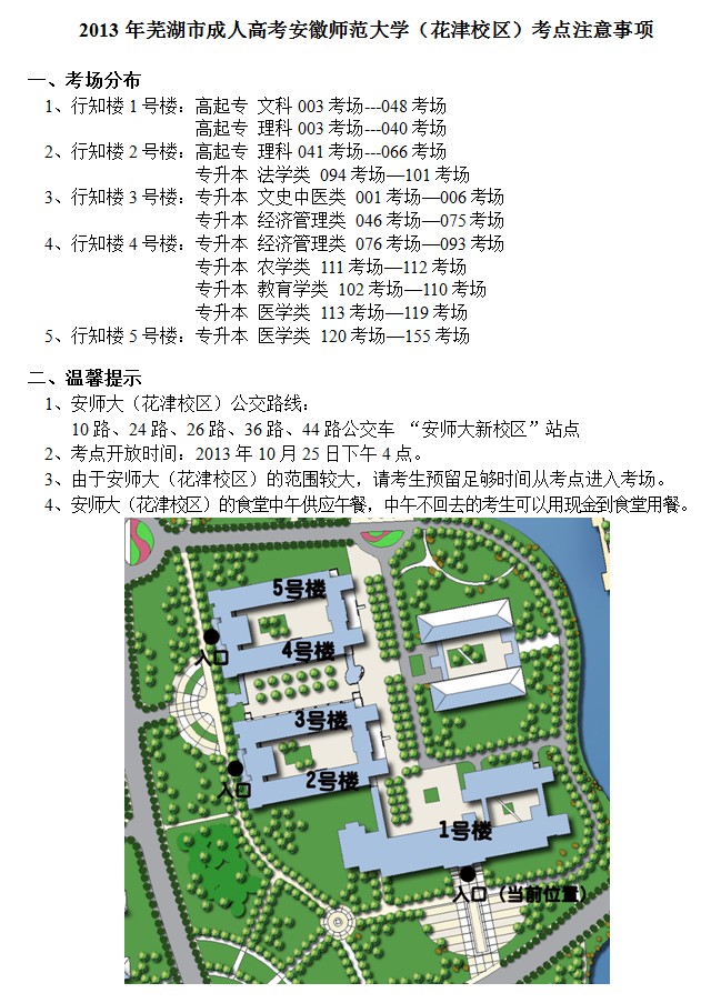 安徽蕪湖市2013年成人高考安徽師范大學(xué)(花津校區(qū))考點(diǎn)注意事項(xiàng)