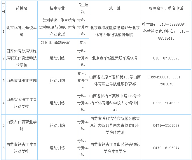 2014年北京體育大學(xué)成人高等教育招生函授站一覽表