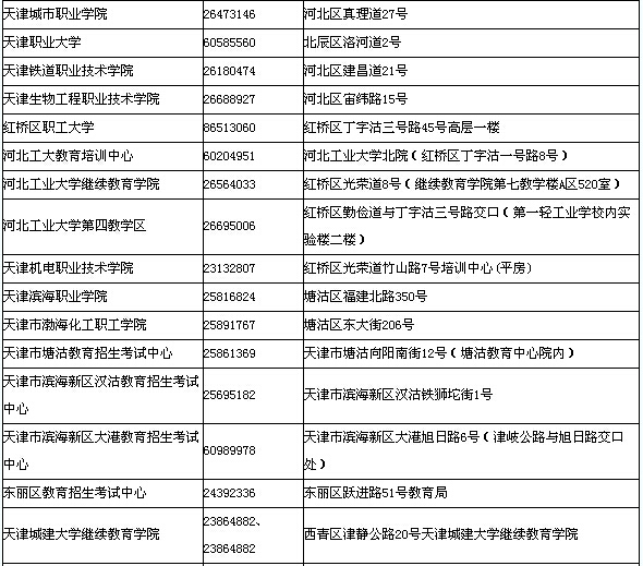 摘要 天津市2014年成人高考預考報名點