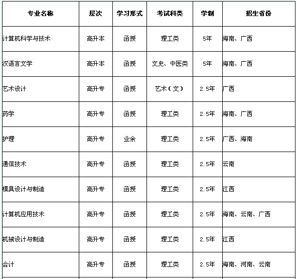 (考生填報志愿時以考生所在省2014年成人高等教育招生手冊為準)