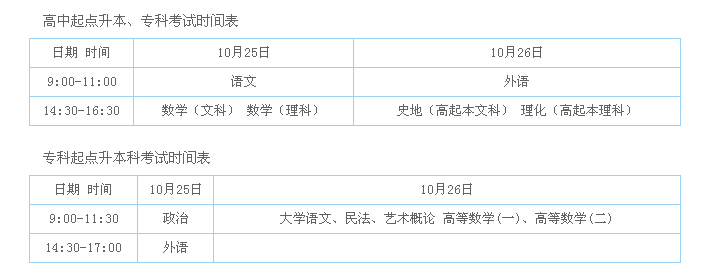 【全國(guó)統(tǒng)一考試時(shí)間】考試日期為10月25、26日。