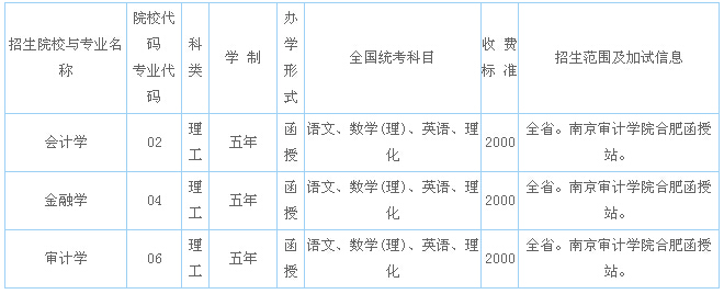 南京審計(jì)學(xué)院合肥函授站2014年成人高考招生簡(jiǎn)章