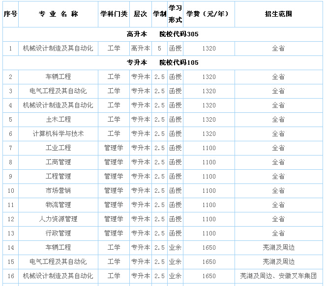 2. 函授以自學和面授輔導相結合的形式進行教學,每學期根據教學計劃由安徽工程大學統一安排面授時間。
