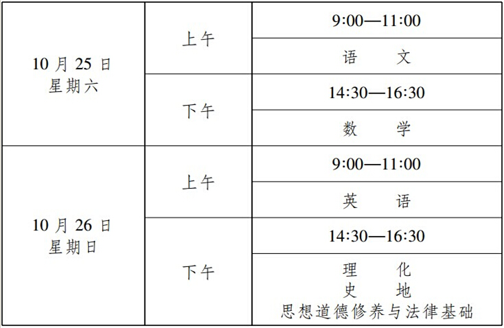 以上各科滿分均為150分,各科考試時間為120分鐘。