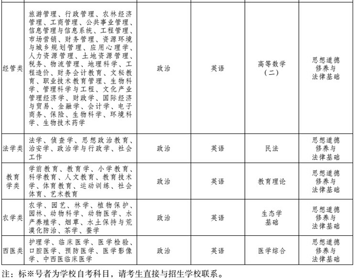 4、經管類考試科目為:政治、英語、高等數學(二)、思想道德修養與法律基礎;