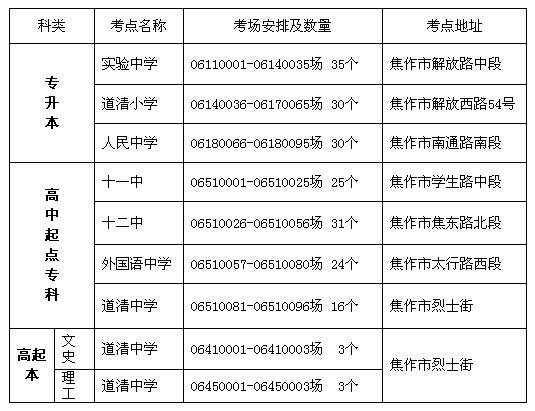 河南焦作市2014年成人高考考點(diǎn)安排