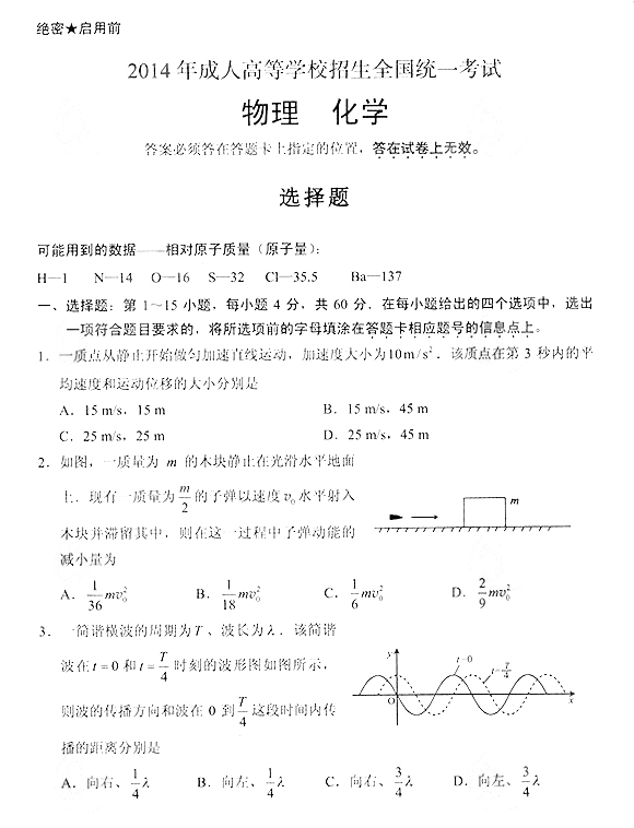 摘要 2014年成人高考已經結束,環球網校第一時間為你提供2014年成人高考高起點理化真題!