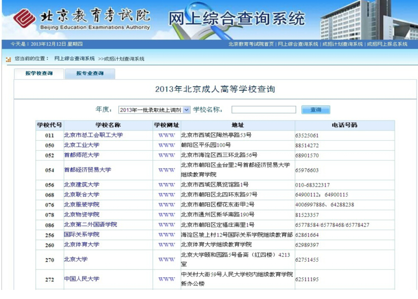 1、通過“調(diào)劑院校查詢”:可以查詢本批次參加調(diào)劑的學(xué)校代碼和專業(yè)代碼。