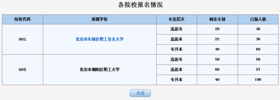 點(diǎn)擊“專業(yè)報名情況”可以查看各個院校層次的剩余計劃及已報人數(shù):