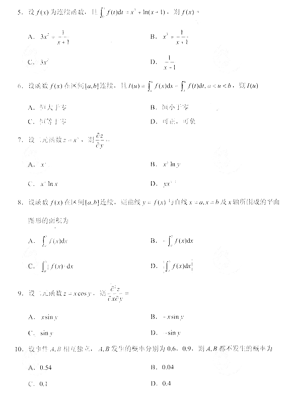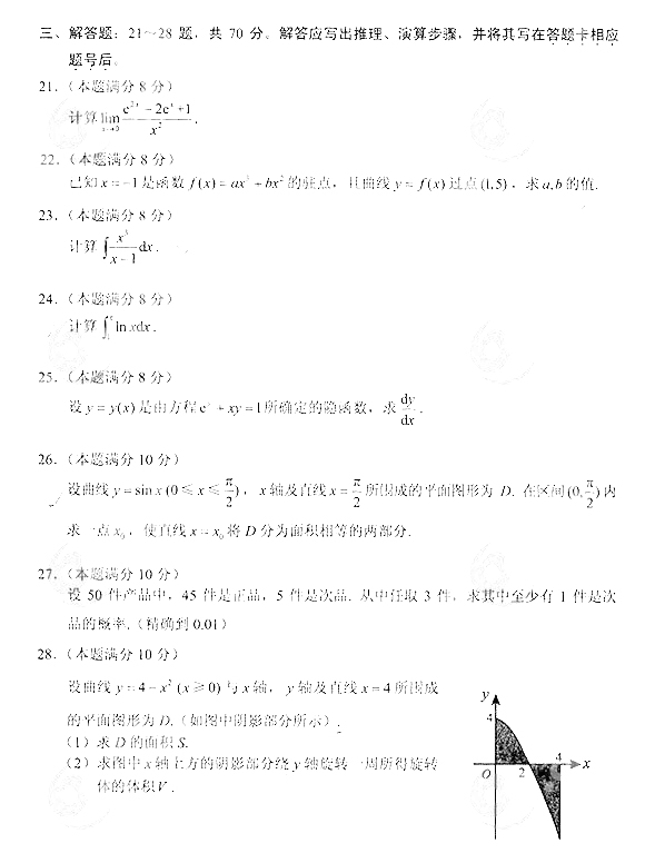 - 2025成人高考高等數學一真題+答案PDF免費下載2025-10-21
