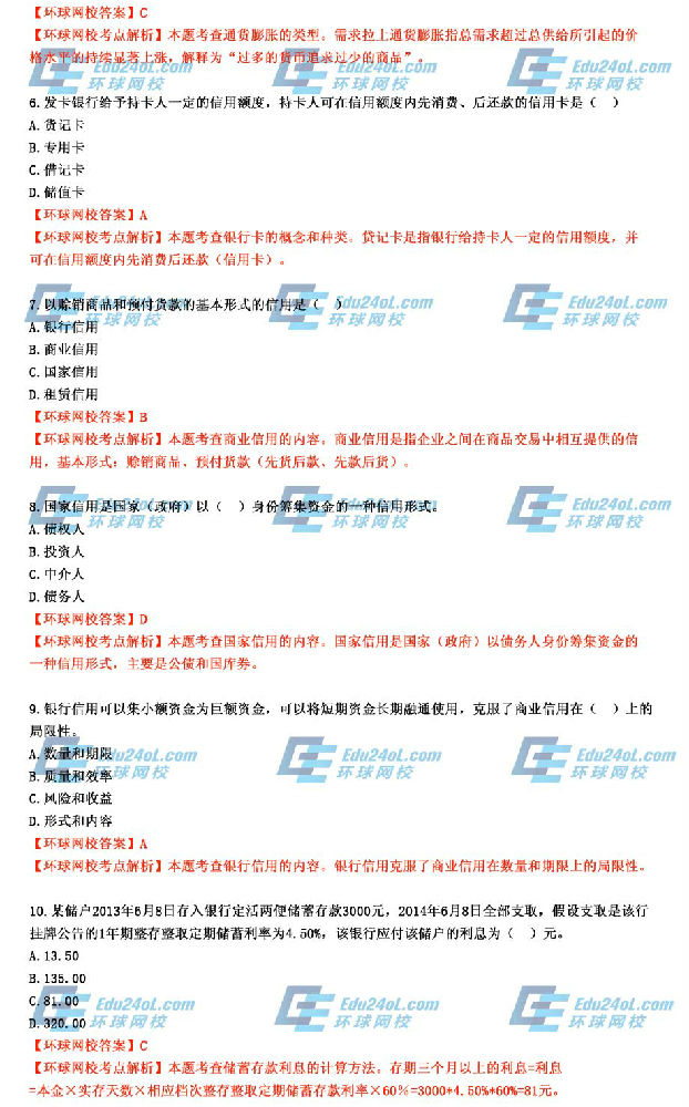 摘要 環球網校2014年初級金融真題答案解析,預祝大家都能順利通過考試