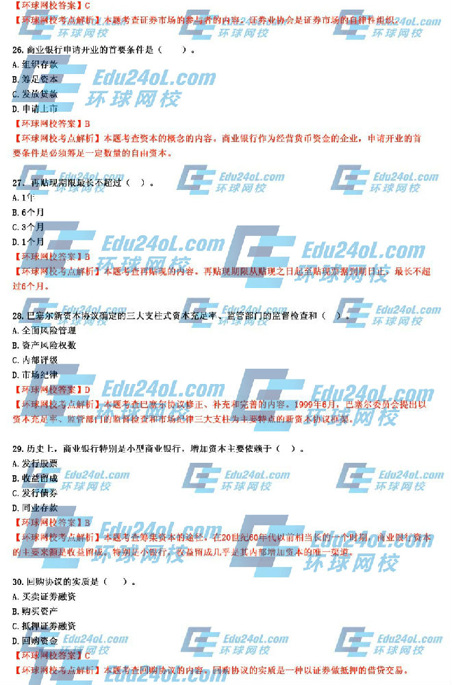 摘要 環球網校2014年初級金融真題答案解析,預祝大家都能順利通過考試