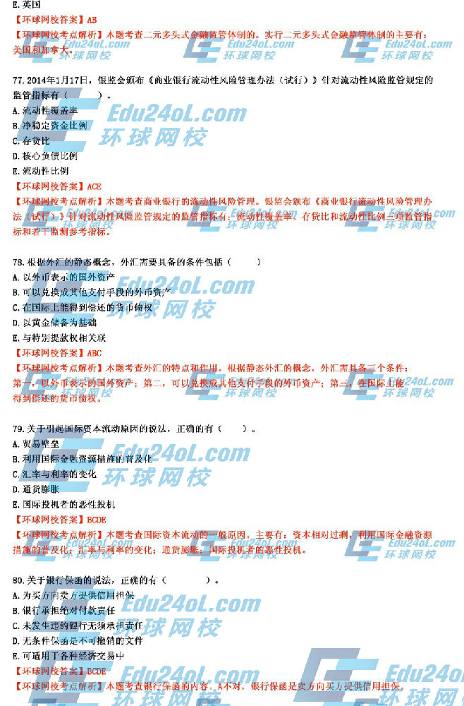 摘要 環(huán)球網(wǎng)校2014年初級(jí)金融真題答案解析,預(yù)祝大家都能順利通過(guò)考試