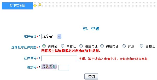 遼寧省2013年中級(jí)會(huì)計(jì)職稱考試準(zhǔn)考證打印入口