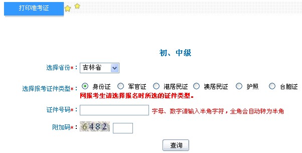吉林省2013年中級會計職稱考試準考證打印入口